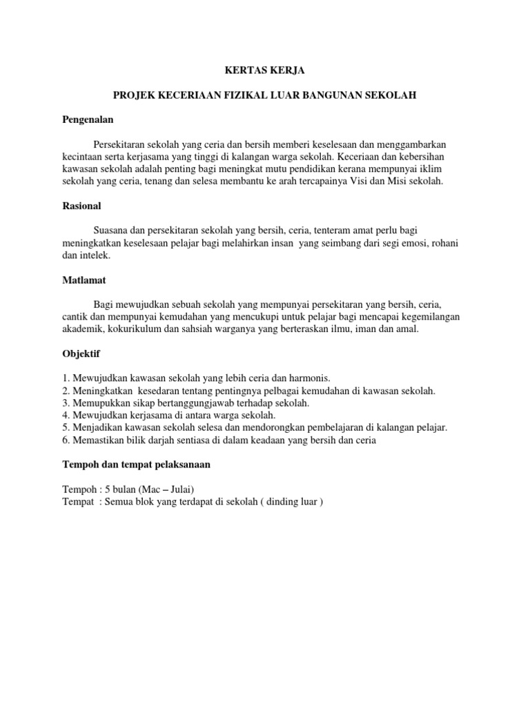 Kertas Kerja Projek Keceriaan Sekolah Pdf