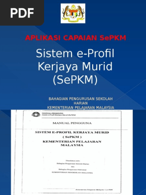 0 0 found this document useful Mark this document as useful. SEPKM ini merujuk kepada Sistem e-Profil Kerjaya Murid yang ditubuhkan oleh Kementerian Pendidikan Malaysia yang bertujuan untuk memantau perkembangan pelajar lepasan SPM. Ini adalah inisiatif PPPM dari 2013-2025 iaitu.